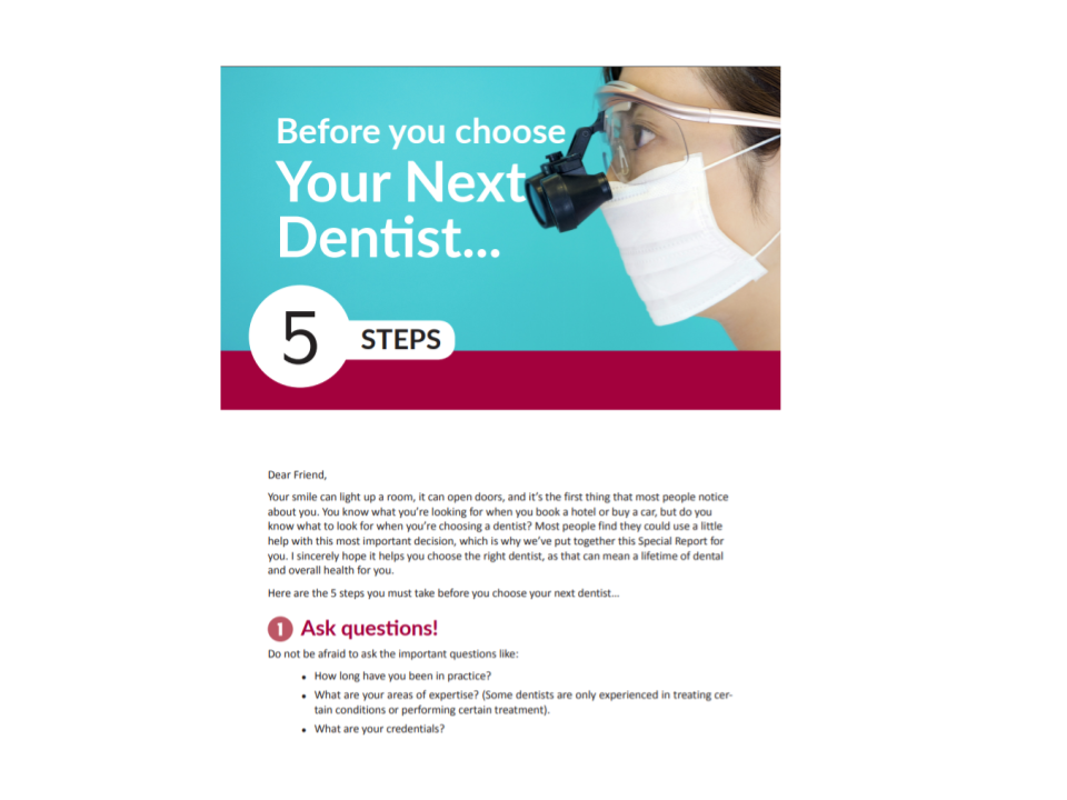 To capitalize on this segment of your market, your website must offer opportunities for the visitor to learn about your practice without having to commit to a visit. Offer special content, which results in a high perception of value to your website visitors. In so doing, you convert anonymous surfers on your website into valuable QPLs. Below are some examples of how to achieve this:
